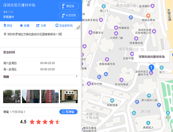 取百安居罗湖店相临,深圳田贝建材市场的从头规划,为业从采办高端家私供给便利。对于Hansa(汉莎)、美标、科勒、TOTO、Joop等大牌已是如数家珍。运营商品十几万种,采用保守的商铺运营模式,乐安居笋岗店为于罗湖保守的物流和建材市场园区,